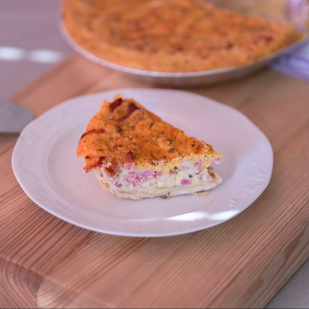 Our Bacon and Cheese Tart (in foil) Medium is made in small batches for the best taste and texture. Perfect for sharing or enjoying as a special snack. There is a two day lead time, as we bake to order and do not keep stock.