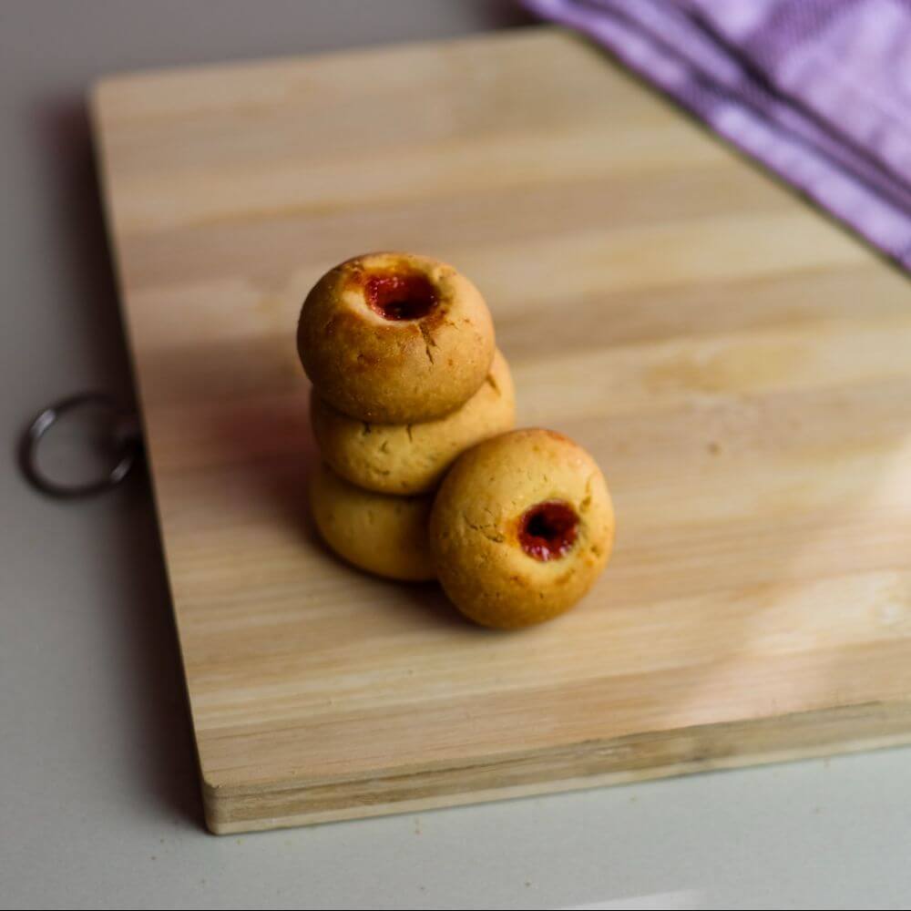 Sweet biscuits with a soft centre filled with fruity jam.